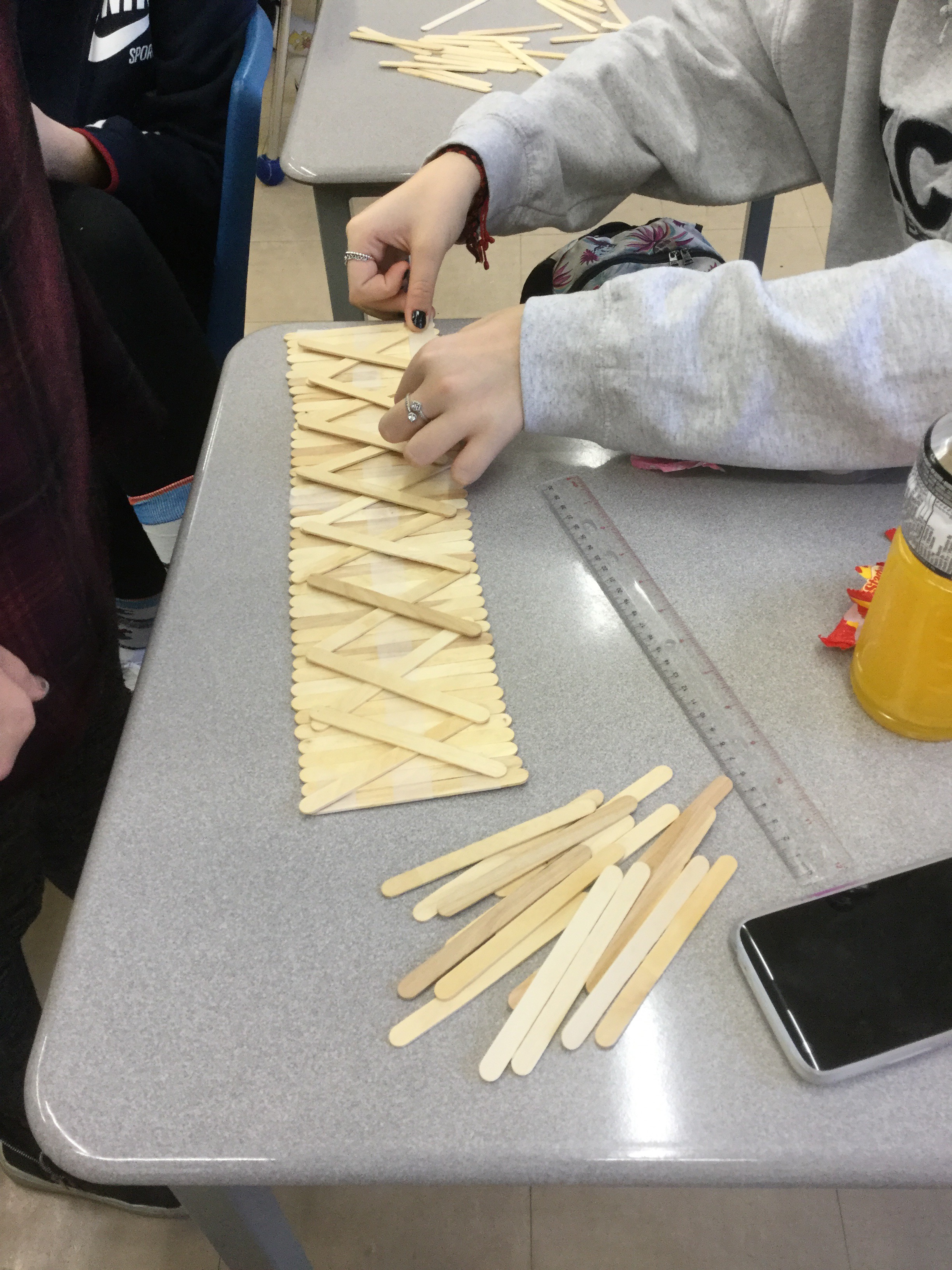 She brought us a challenge: to make a popsicle stick bridge.