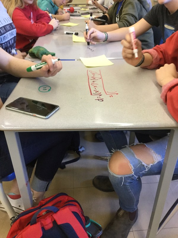 Today we worked on our math review using a “speed dating” set up. Partners sit across the table from each other and both solve the question in front of them. Once both get the question, one side of the table stands up and shuffles one position to their left. They will be sitting wih a new person and working on a new question. They will have an expert sitting in front of them who ensures their expertise gets passed along. After 5 minutes the “experts” will shift one space to their left and have a new partner and a new question.
