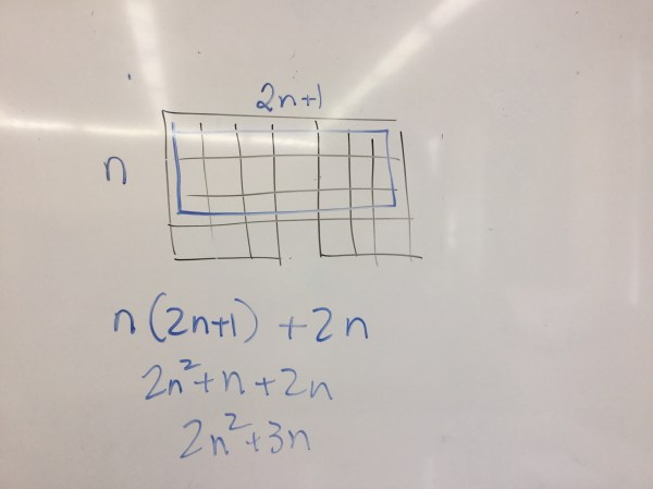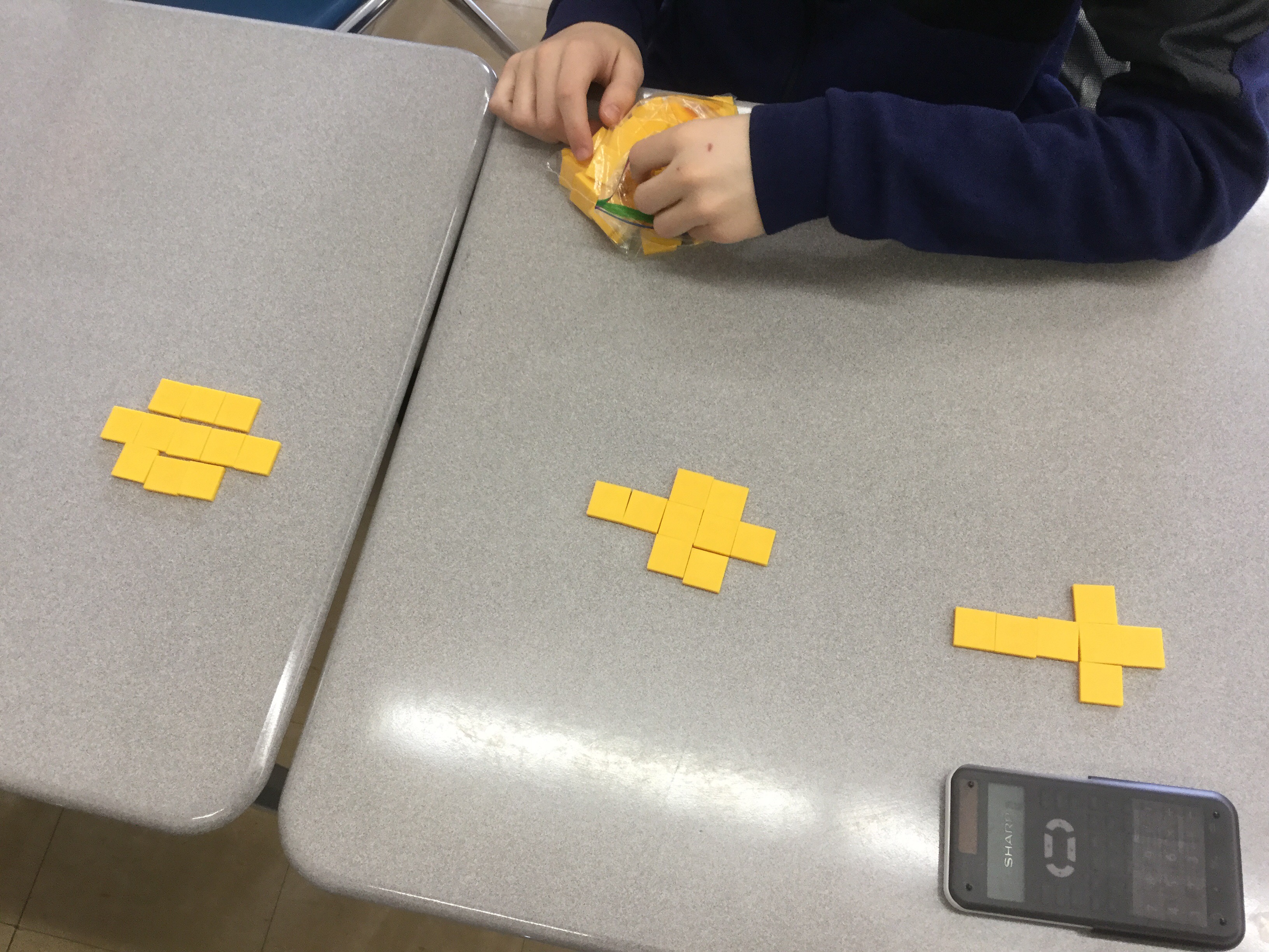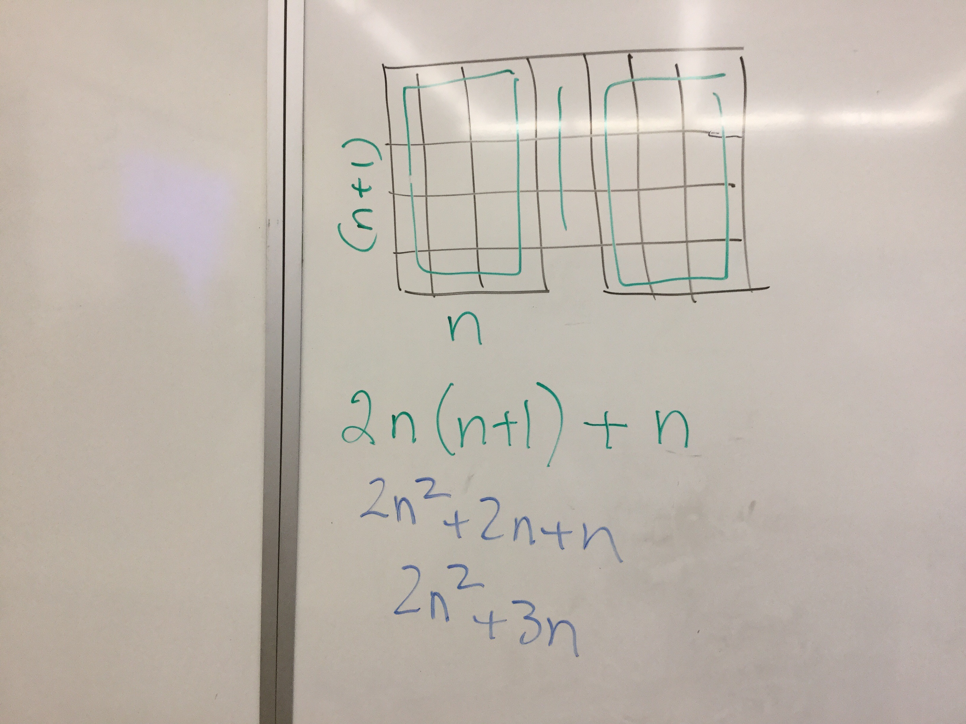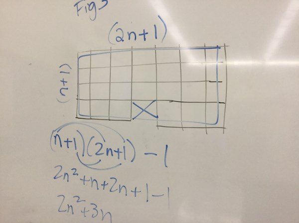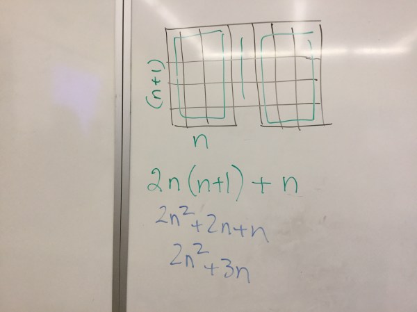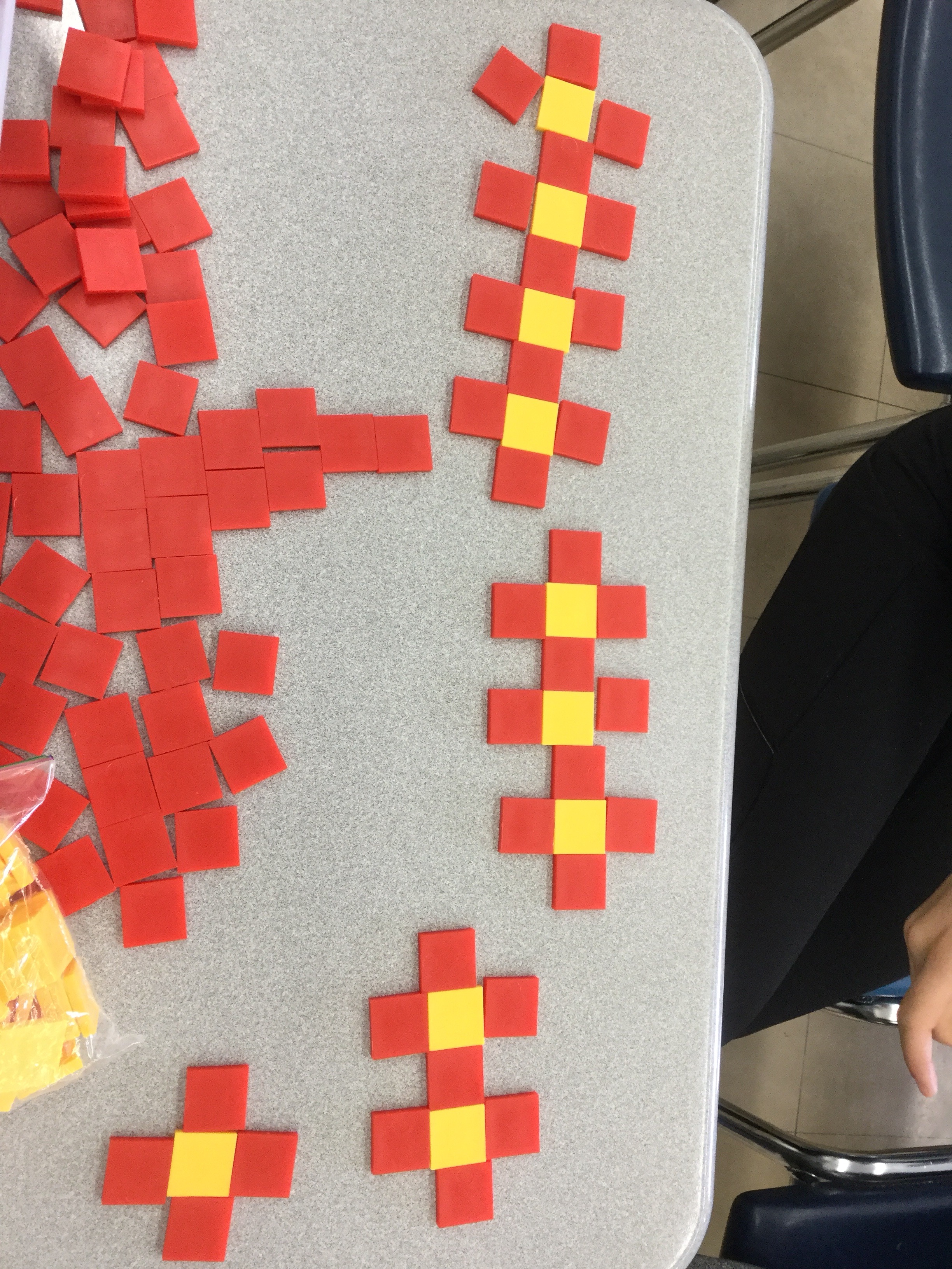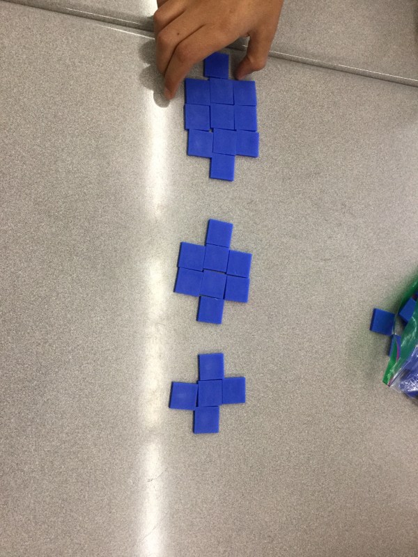 We made 3 of them, then explored the algebra that gets us from term number to the number of tiles.