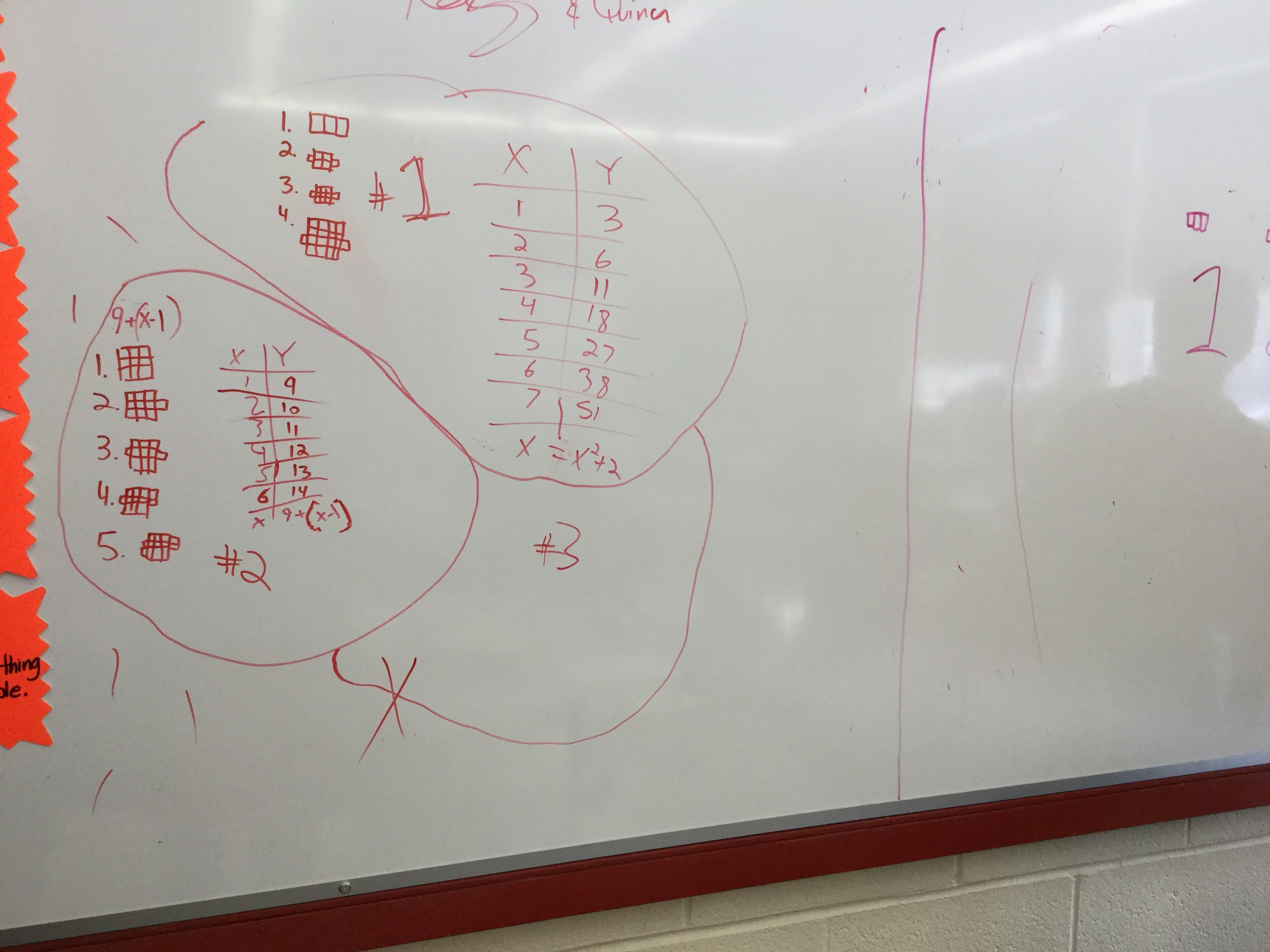 Today we explored visual patterns again, and worked on connecting the pattern growth to an algebraic model.