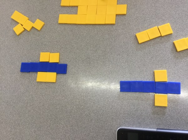 We tried many different patterns, some were linear, some were not. It was a good challenge to make the pattern rule and test it out by building more terms, or by making tables and charts, or using algebra.