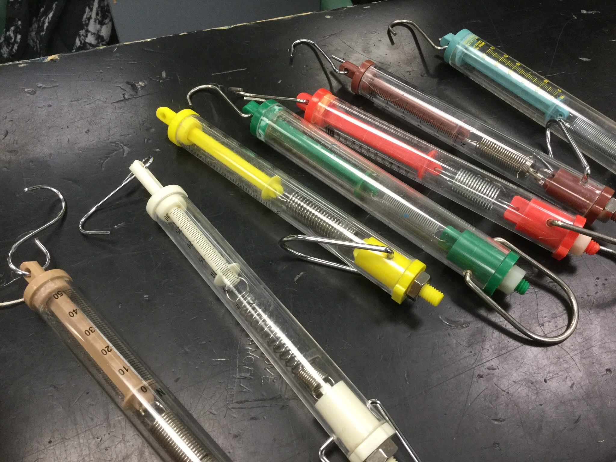 These are spring scales. They are used to measure the weight of things, and the forces on things.
