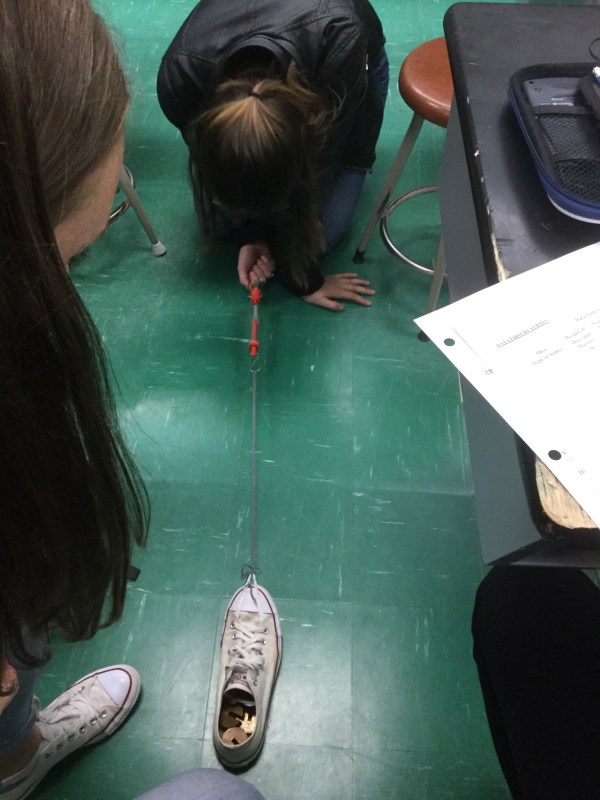 We measured the weight of the shoe, and then we pulled he shoe to determine the force of friction on the shoe. We added mass and repeated the procedure.