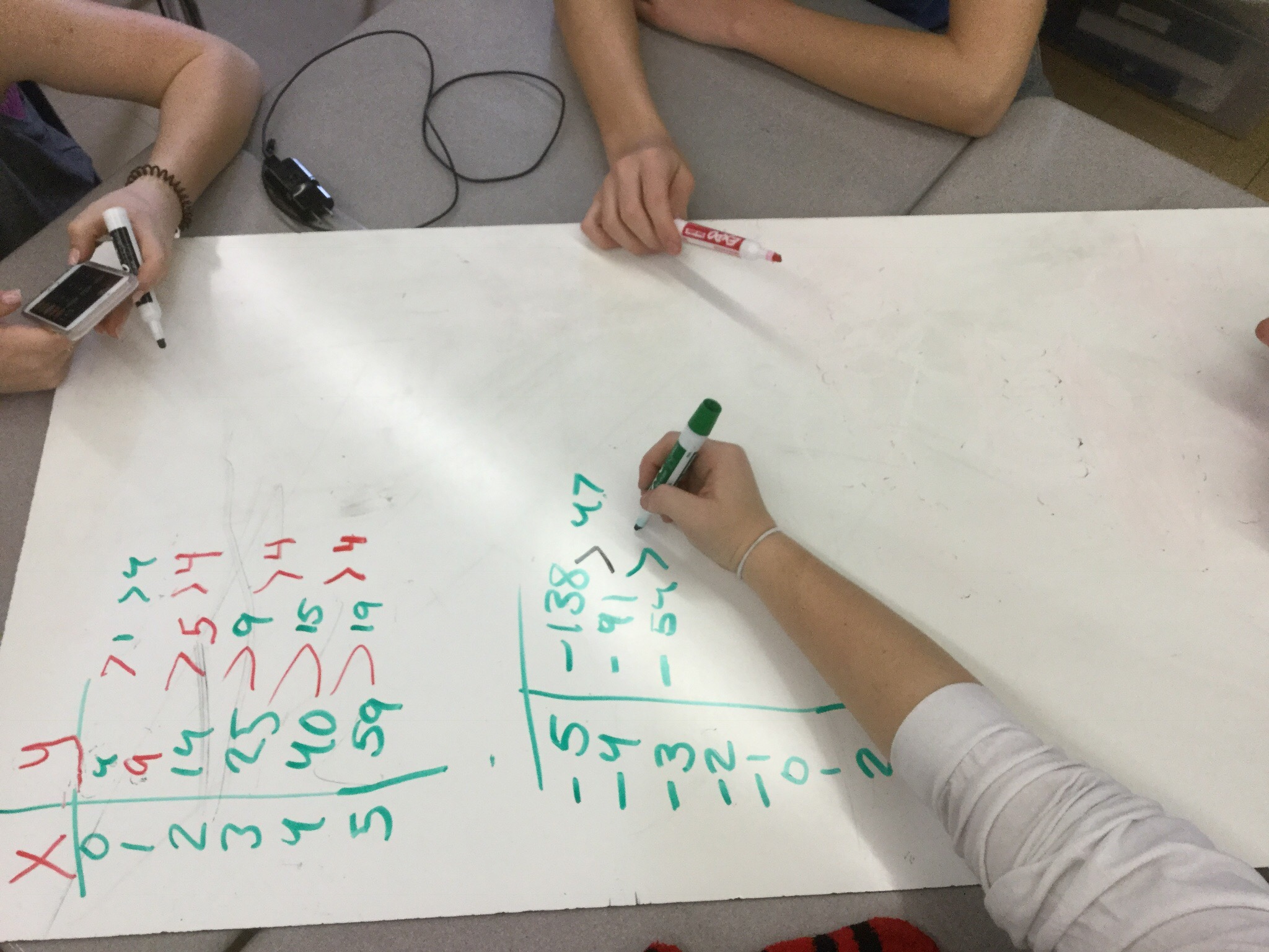 In grade 10 we are investigating tables of values, and how to determine the equation of a parabola given the table.