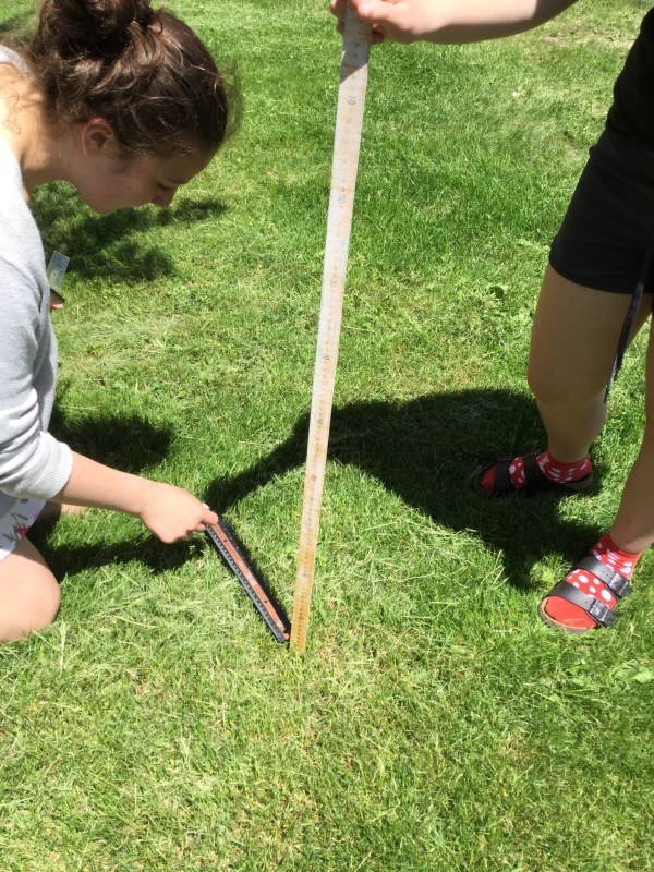 We used a meter stick as a reference, and measured the lenght of its shadow.