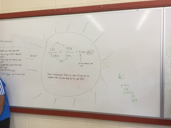 The next thing we did today was to look at a 3 act math task. We used a video of “crazy taxi” act 1 and wrote down what we noticed and wondered.