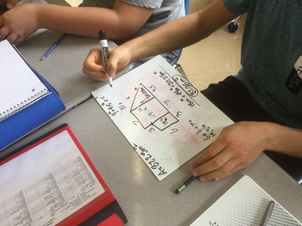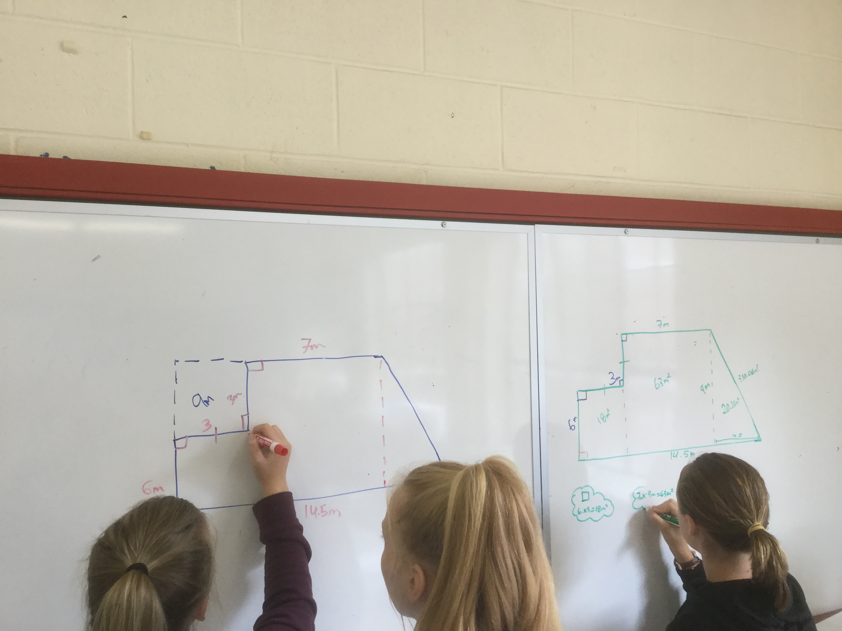Today grade 9s worked on remembering a lot about area and perimeter calculations for complex shapes.