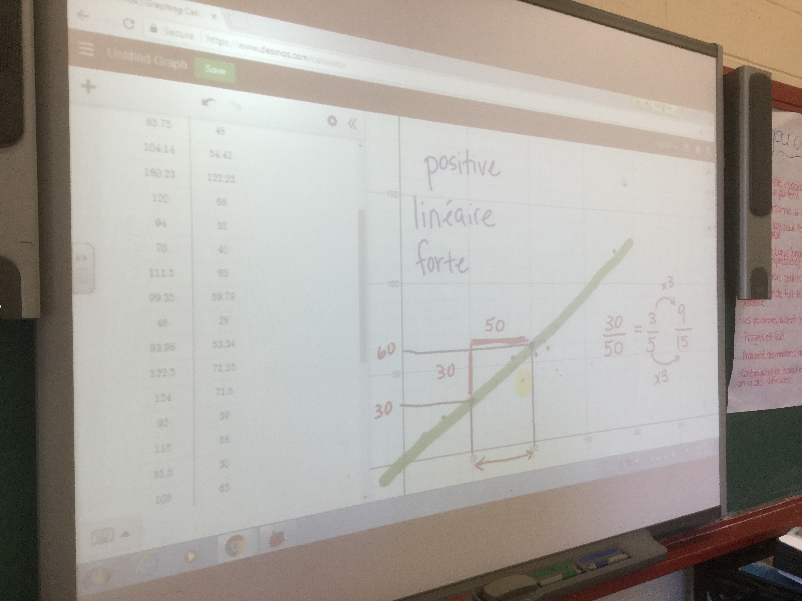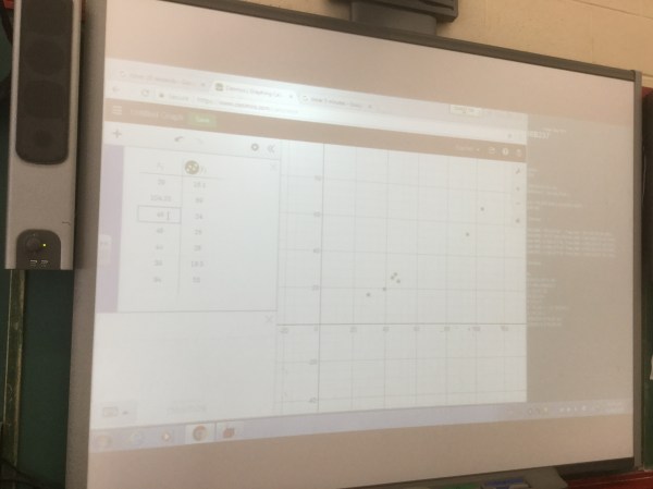 Period B’s results showed the following relationship. We calculated that the ratio in the data was about 3:4 or 9:12 which was not what most of us predicted. (The current TV proportions are frequently 9:16). We discussed vocabulary to describe the trend, and discussed some “outlier” points and where the variability may come in our measurements (measurement error, how to report fractions of inches, age of TV-older TVs could be more square).
