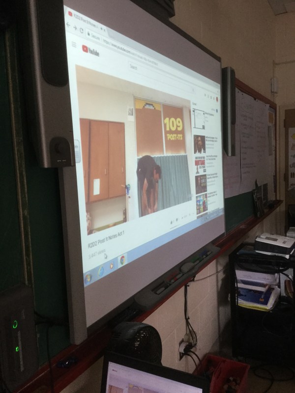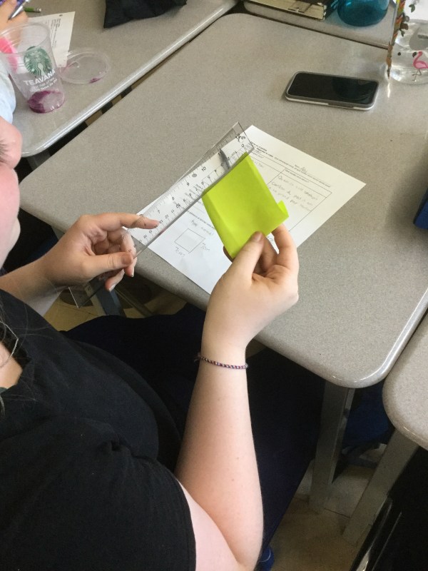 We watched a video, and wrote down what we noticed, and wondered about the situation…then made some estimations to determine how many stickies it would take to cover the board.