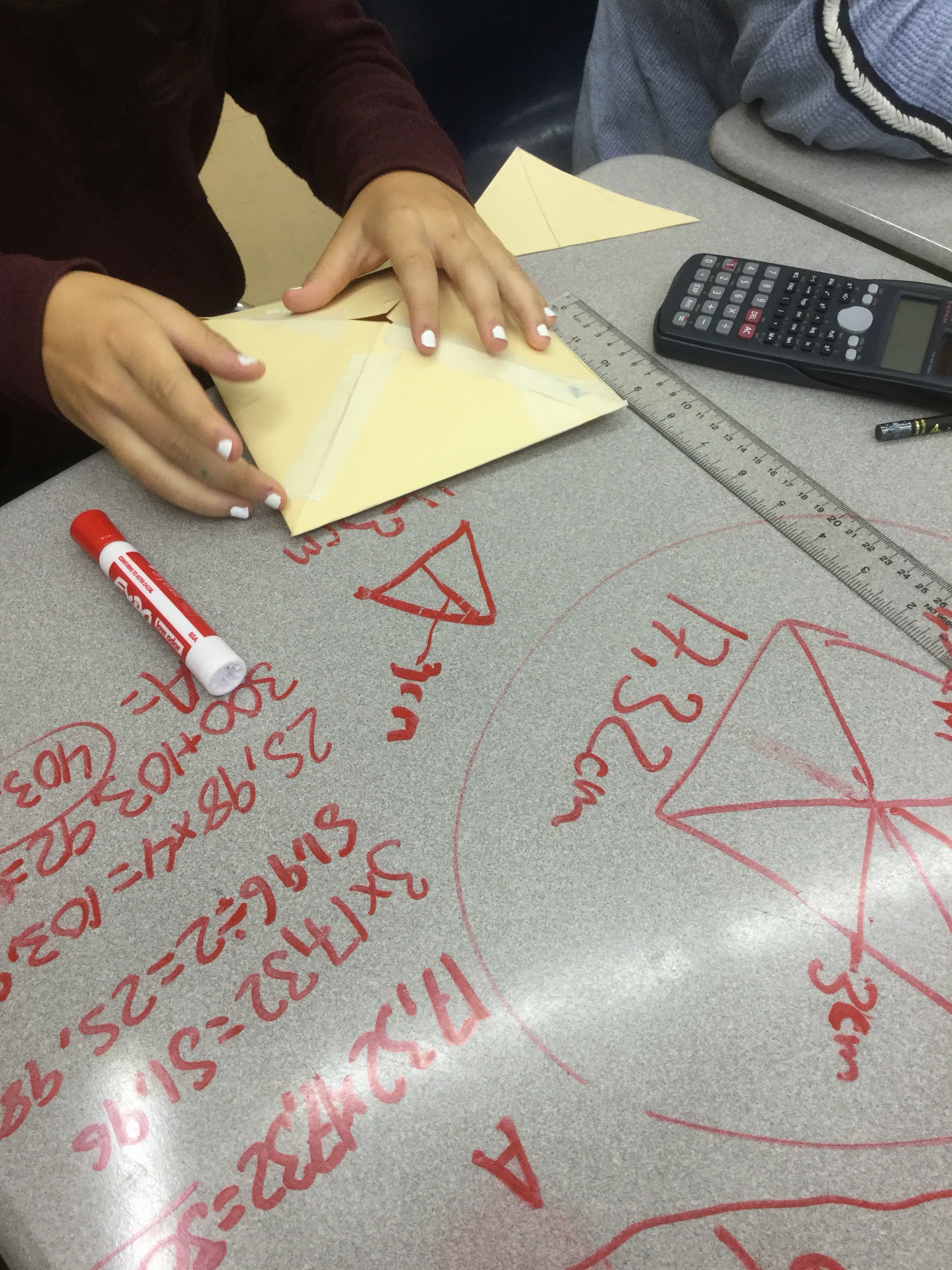 We started our exploration of pyramids today with a challenge. It was based off of work done yesterday. Today’s challenge was to build a pyramid with a volume of 300 cubic centimetres.