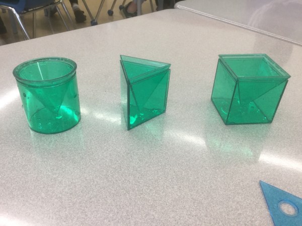 We predicted how many pyramids full of water we could dump into the prism. Many thought it’d be 2. It turns out to be 3, each time, even when the base is a triangle, or a circle. Pretty neat stuff!
