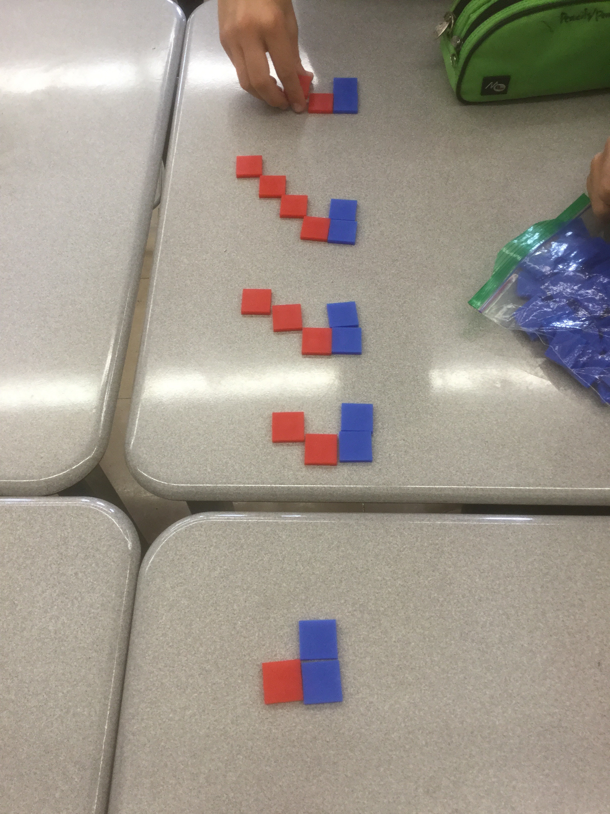 We looked at how many pieces there’d be in each term…and made some difference tables.
