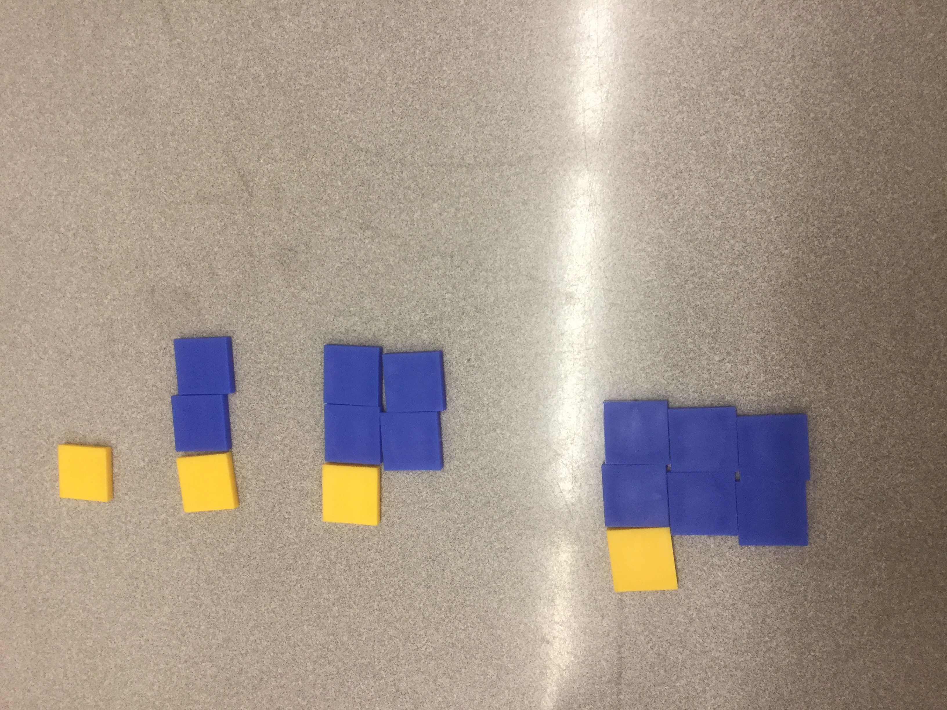 We have been making visual patterns today. We produced figure 1, figure 2 and figure 3 and are working on identifying expressions to explain the pattern.