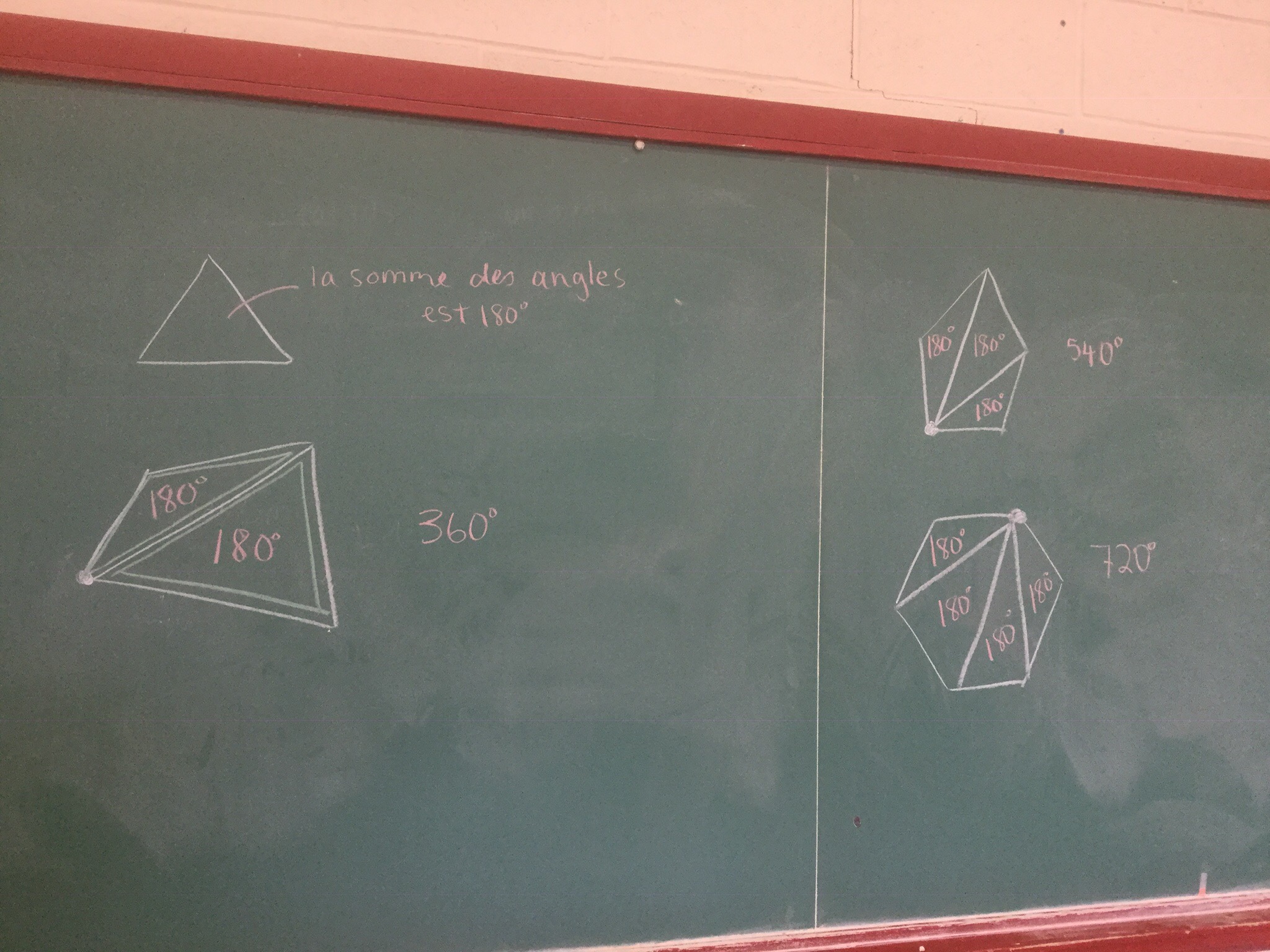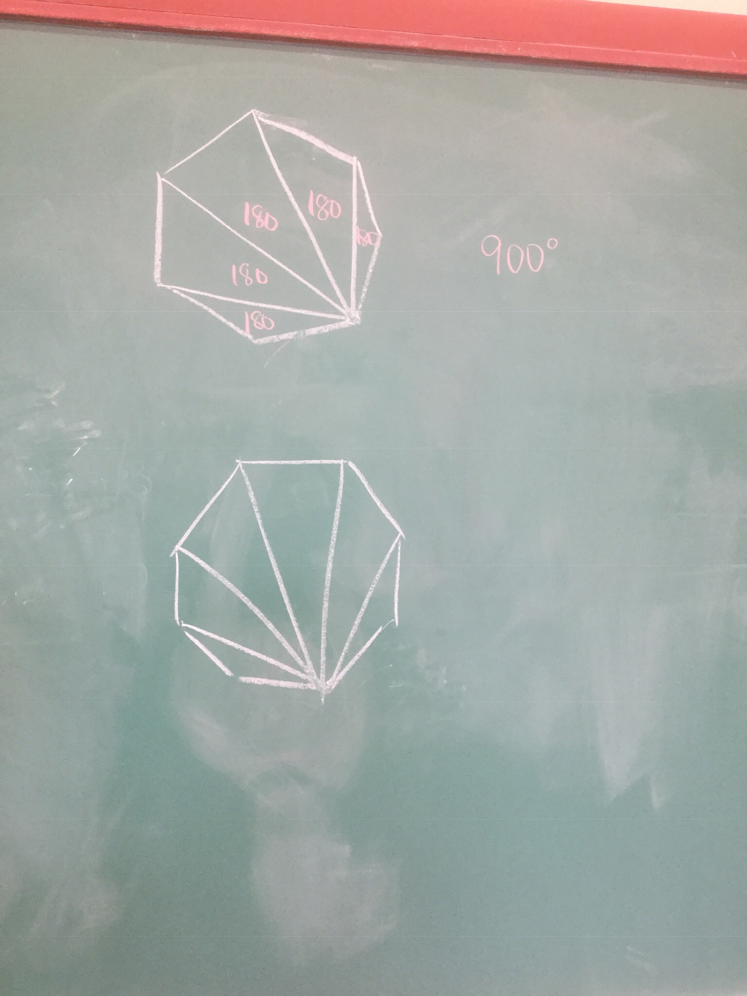 We looked at a lot of polygons. We drew diagonals from one point to the other corners.