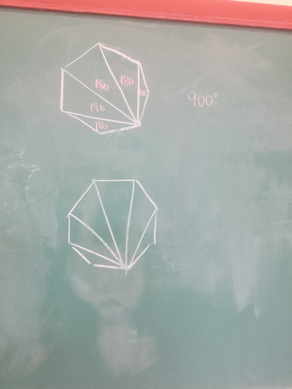 We then looked at if a shape had 100 sides, what the sum of the internal angles would be, and if it was regular (all congruent angles) what each angle would be.
