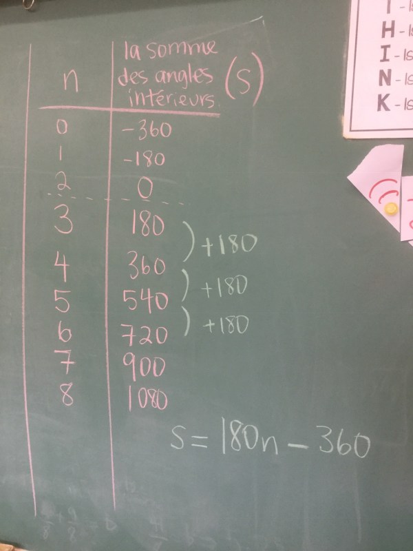 And then we did another table and equation for the number of degrees in the polygon.
