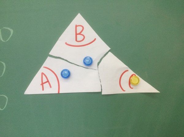 Period B got into patterning and polygons. We looked at how many degrees there are in a triangle. If we add up all the angles….