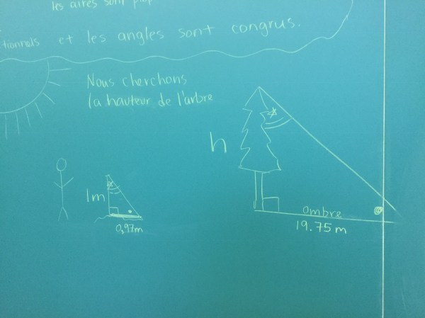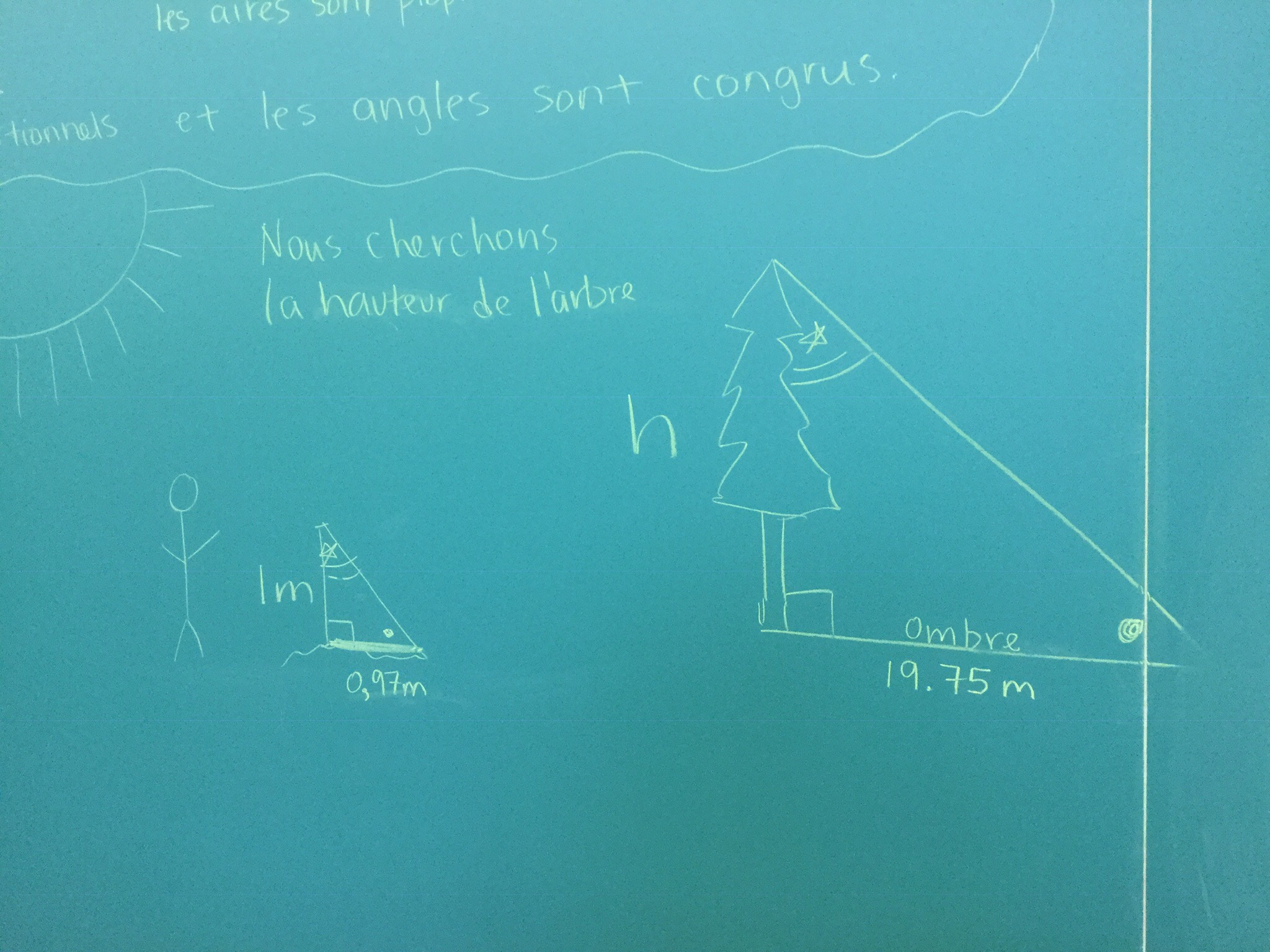 We started with a 90 degree angle and the sides 10cm and 9cm in one triangle, and 27cm and 30cm in the other. Using our knowledge of the pythagorean theorem we calculated the hypotenuse. We also used our learning from Monday to calculate the value of the angles using our trig tables. We had the option to use the ratio for sine, cosine or tangent since we knew all 3 sides.