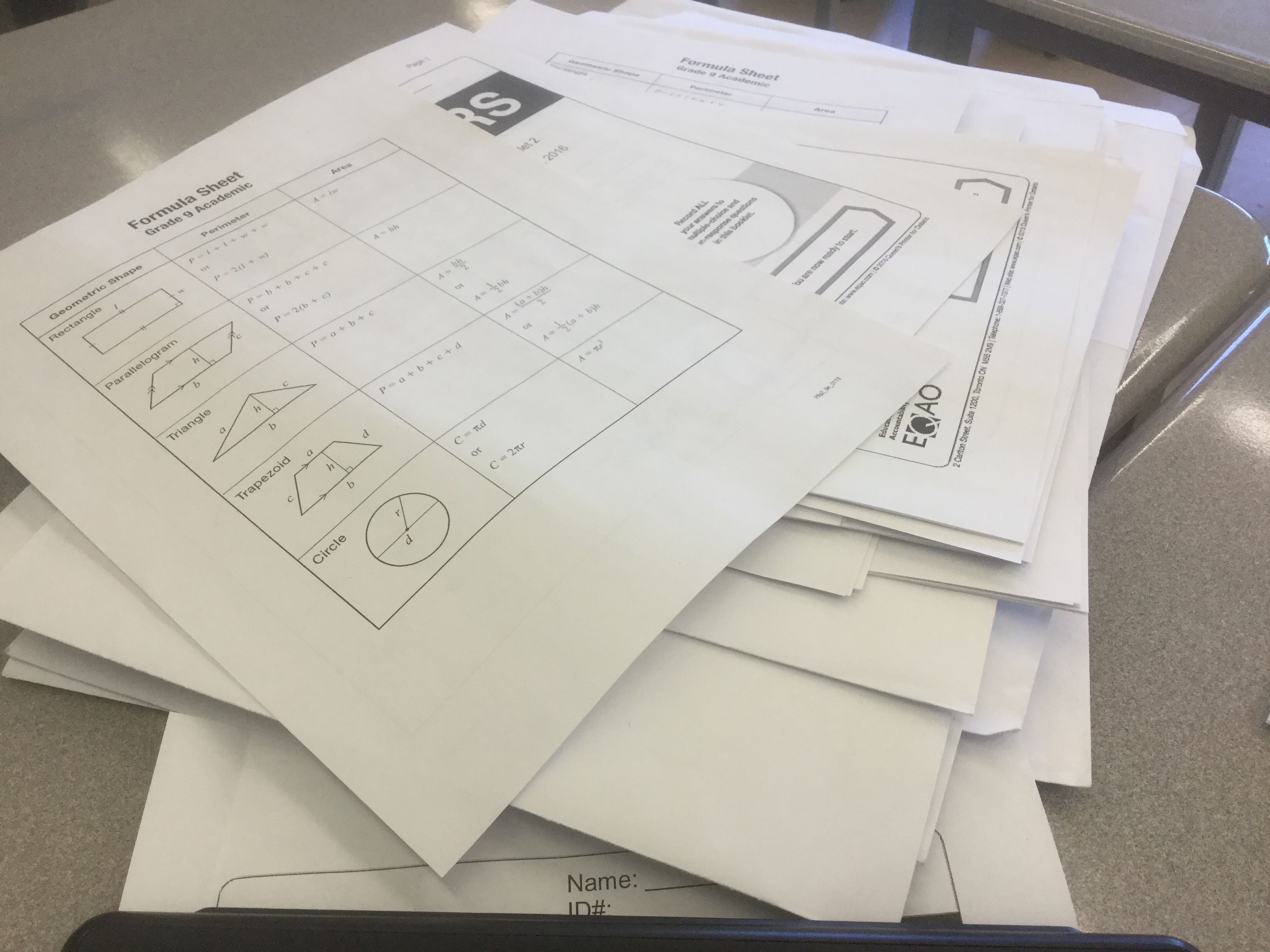 Grade 9s are trying a practice EQAO test today to get the feel of things before the real test on Tuesday/Thursday next week.