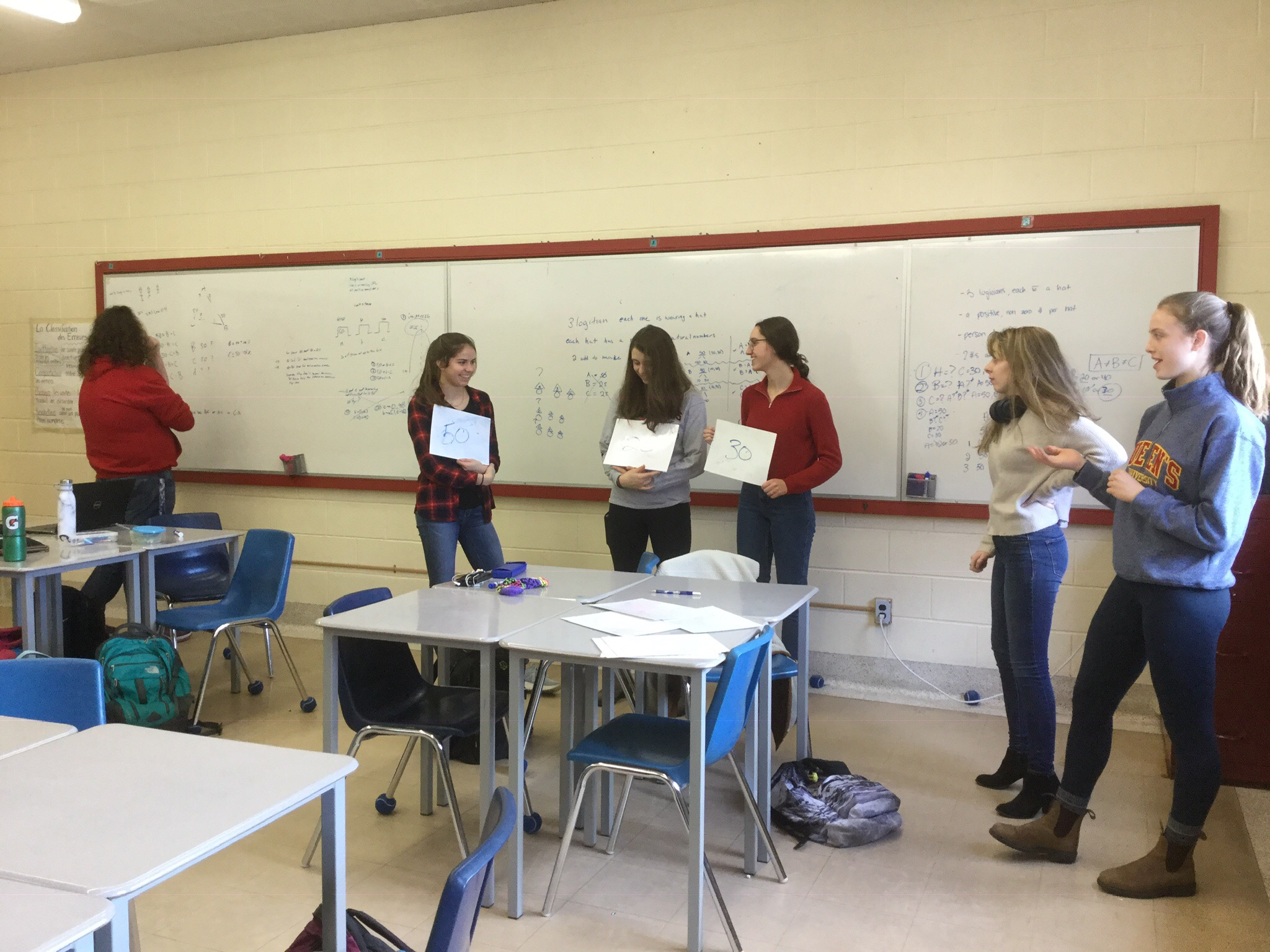 Our class today helped us get into the swing of things in a thinking classroom. We were in random groups, up at the board, tackling a challenging problem.