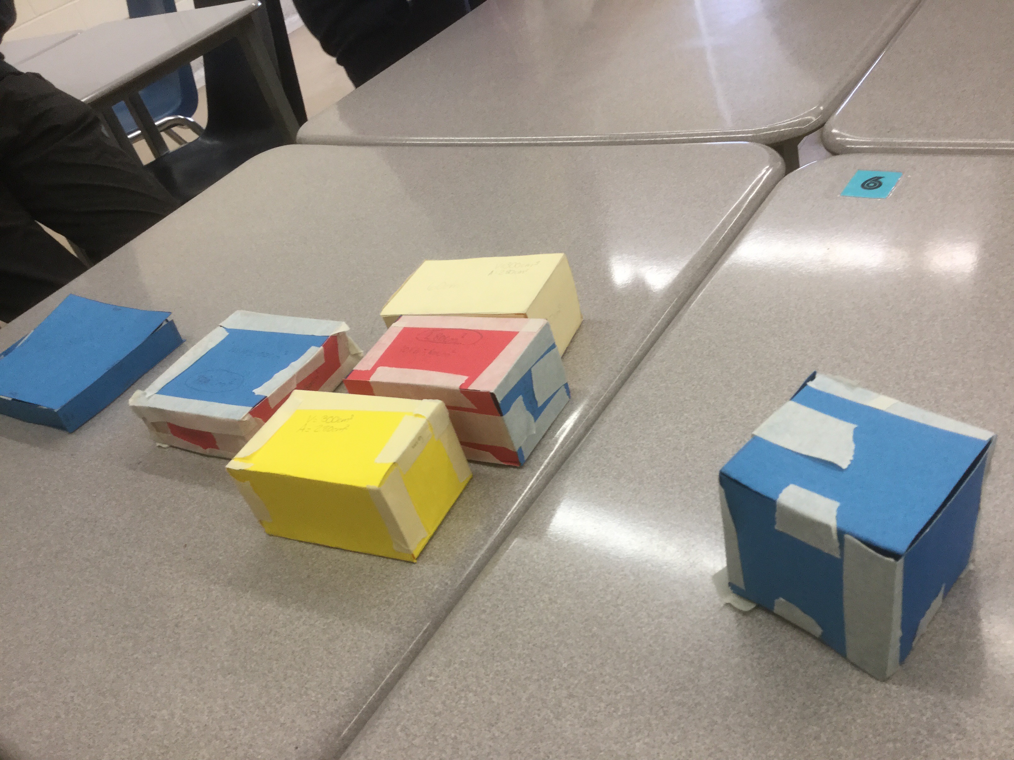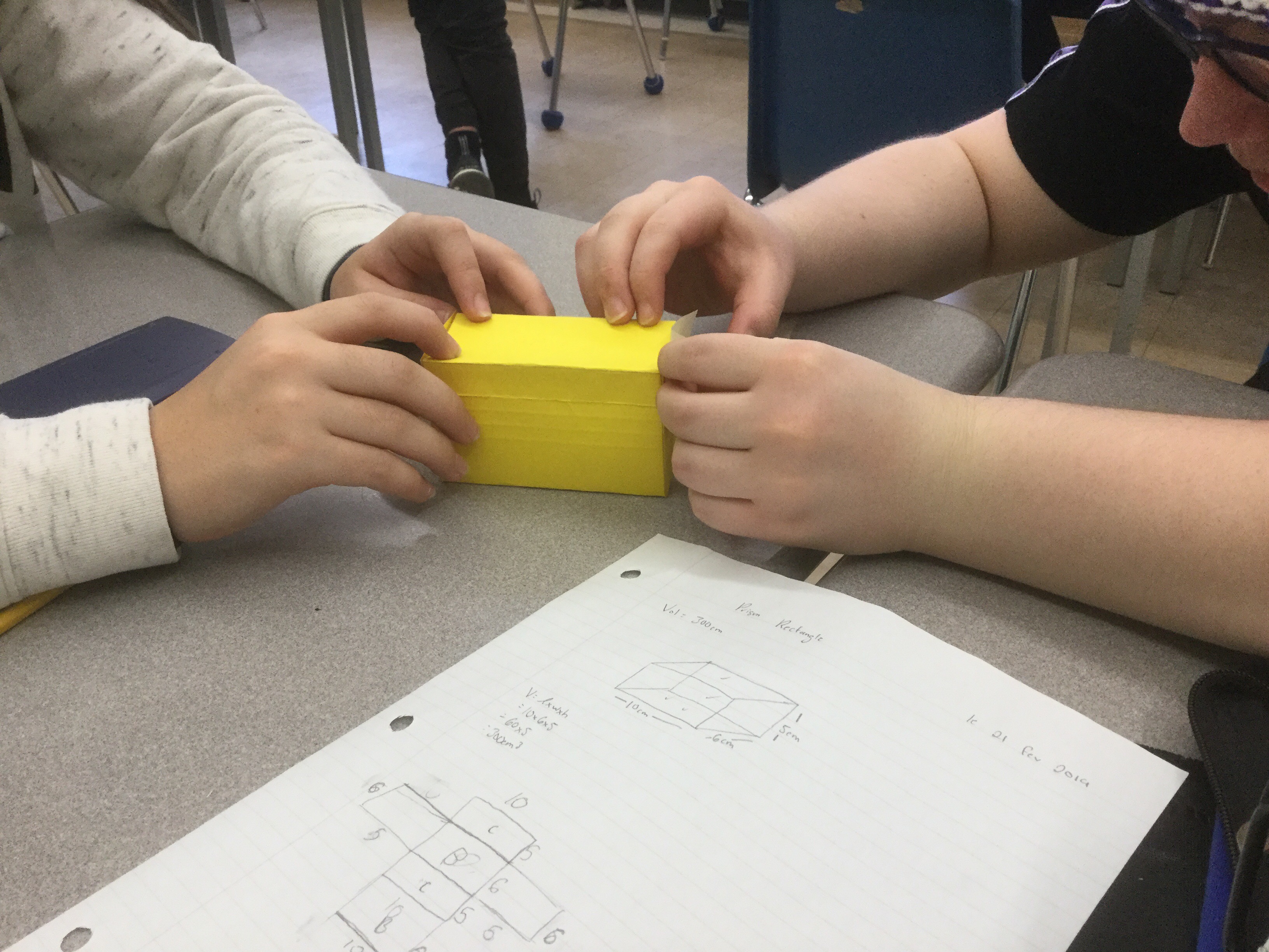 We had the task of building rectangular prisms wih a volume of 300 cubic centimeters.