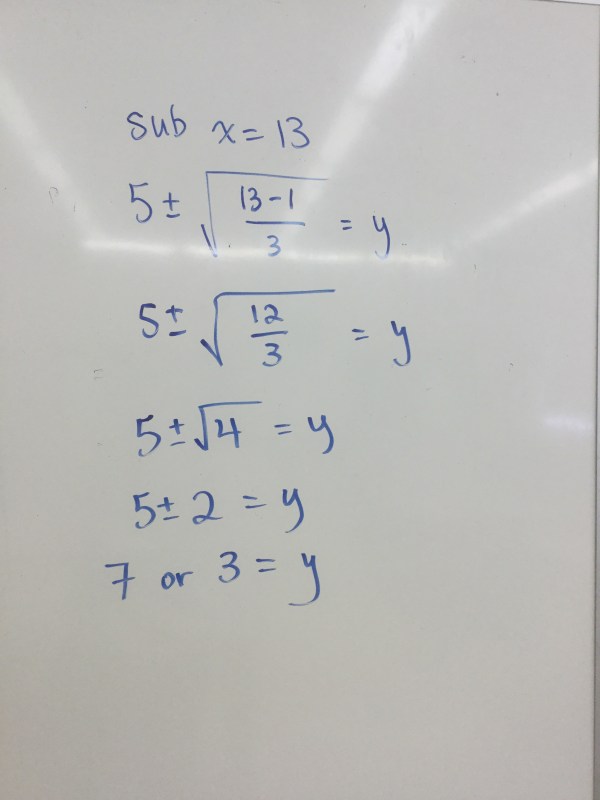 When looking for the inverse at 13 we get proof that it is not a function since we get two outputs.