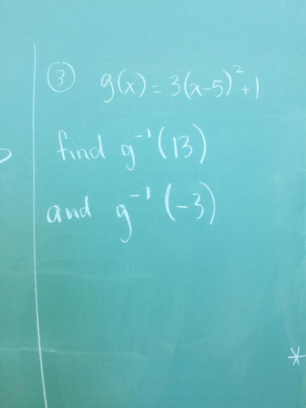 And the inverse at -3 doesn’t exist (no real value), because we cant take square roots of negative numbers, which makes sense when you look at the graph, because there are no points on the graph of the inverse that correspond to x=-3.