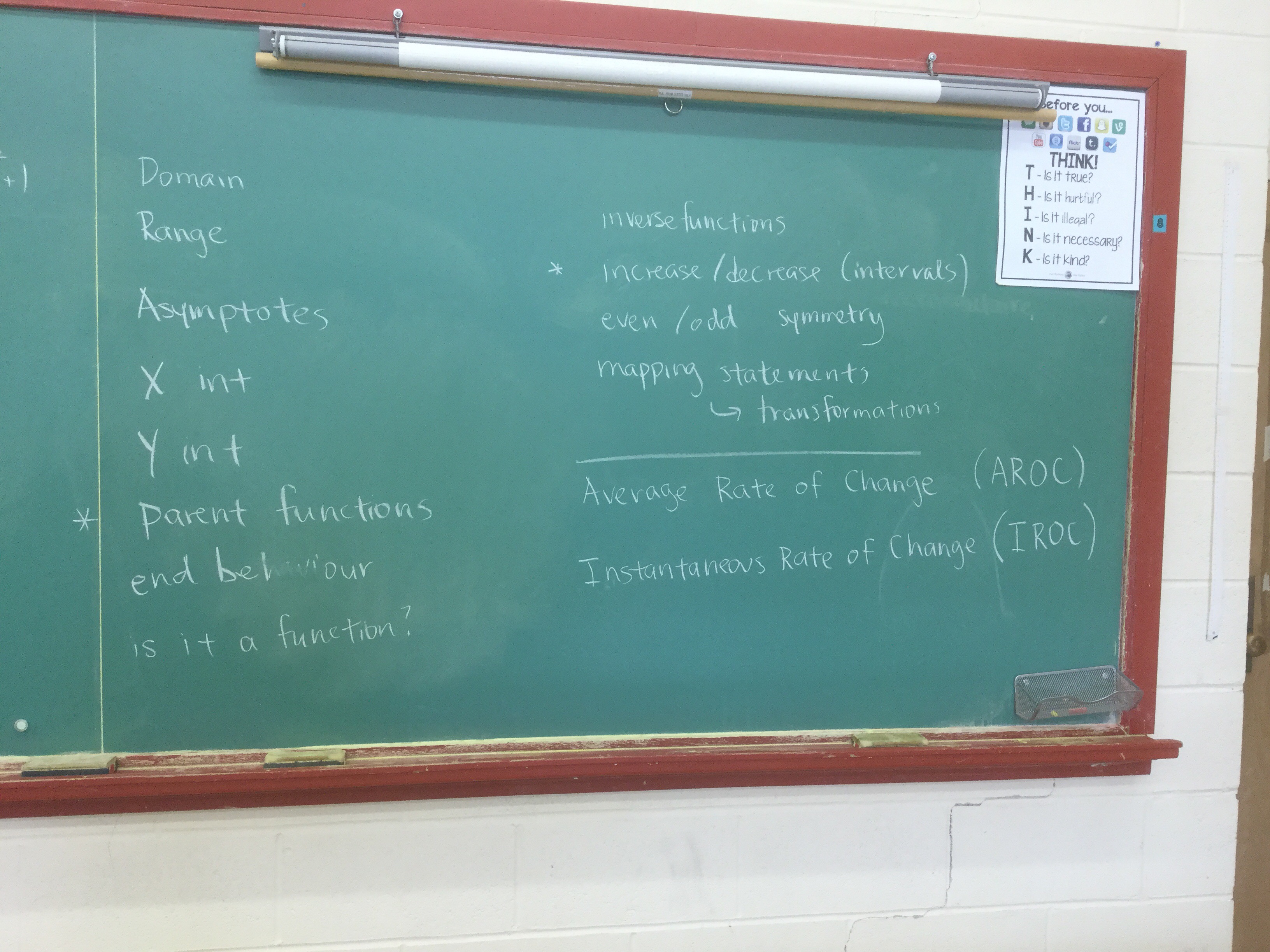 We have gone over many topics about functions and are heading toward calculation of average and instantaneous rate of change.