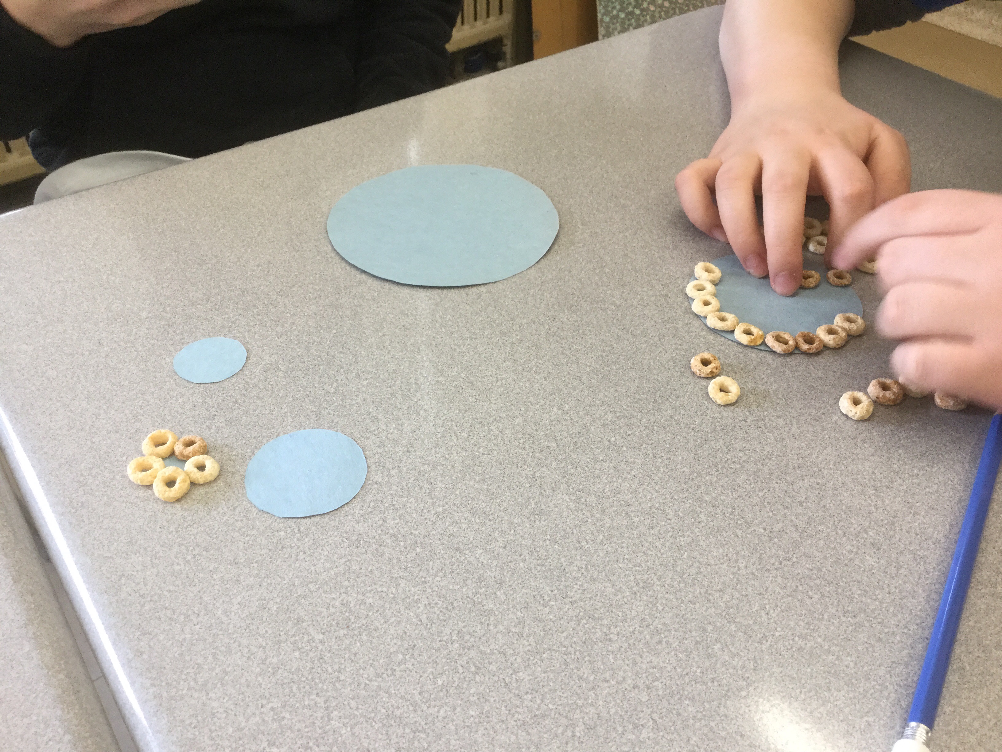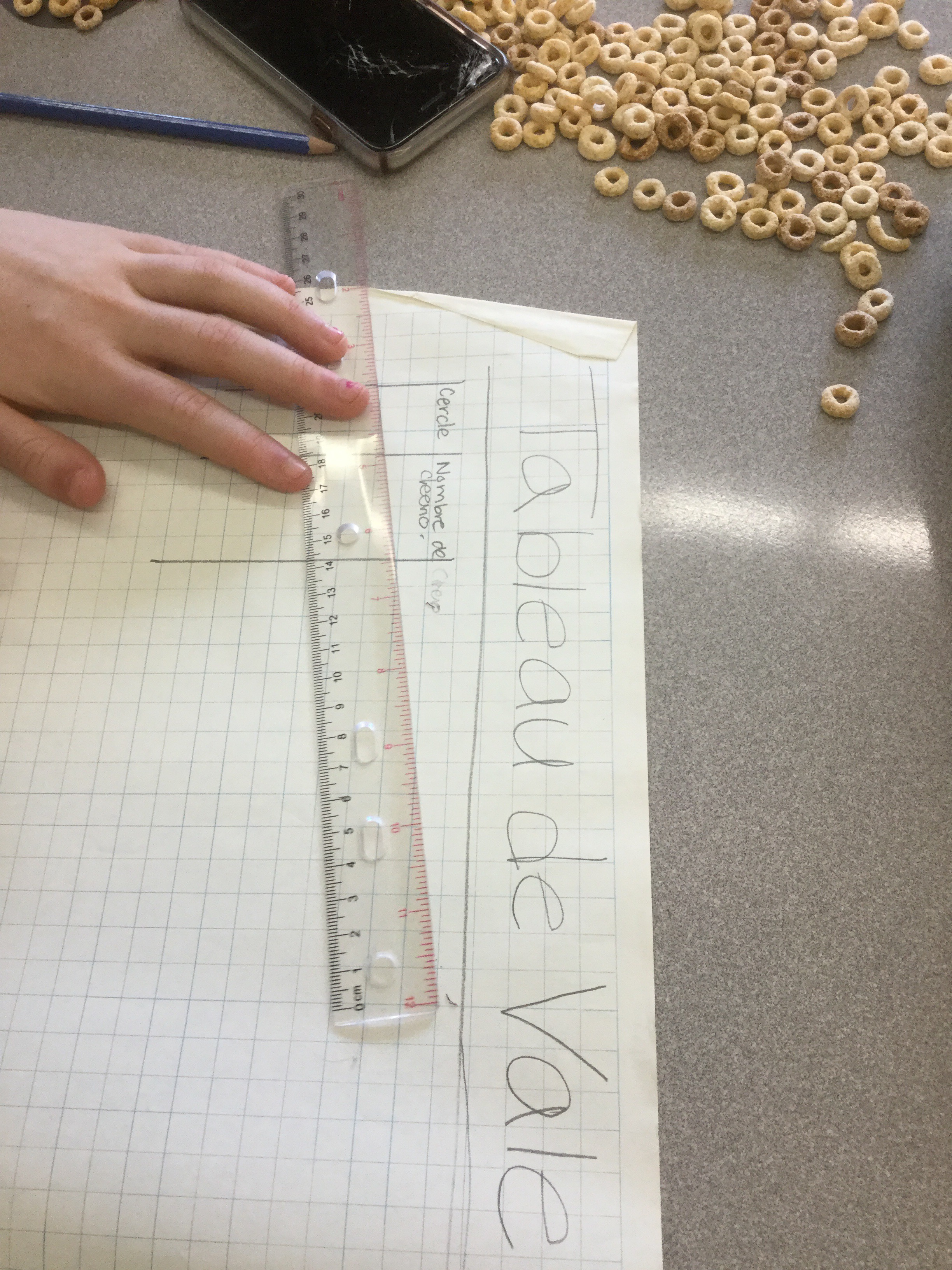 Grade 9s worked hard to model the number of cheerios that could fit on a variety of circles.