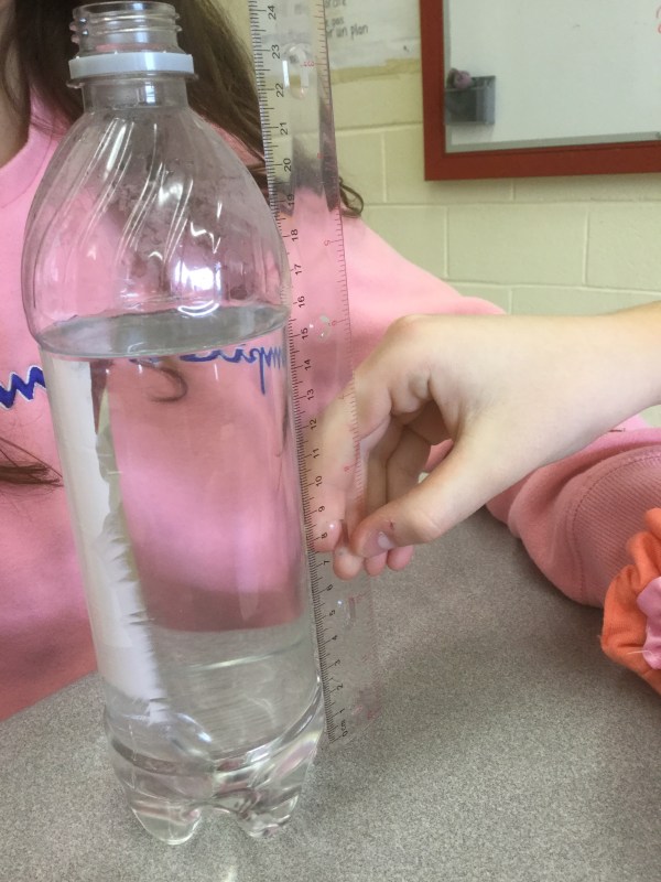 We used the app “sonic tools” to determine the frequency, and we started out with a lot of water in our bottles (which creates a small air column), and we decreased the level of water between trials, which increases the column of air in the bottle.