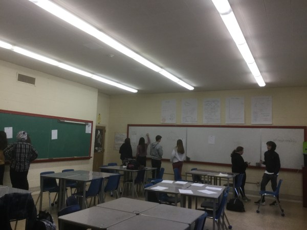 We worked up at the boards, and moved around, solving questions at each station, then checking our answers, and erasing so the next group could try.