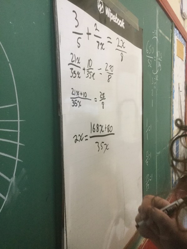 We are working on developing new skills with algebra, and remembering how to work with fractions! We have a solid understanding of common denominators, even if they need to be big polynomials!
