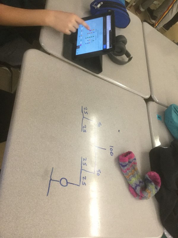 In grade 9 we looked at a new puzzle today. They are called solve me mobiles. We are working with logic to determine the values of each of the blocks so that the mobiles hang level.