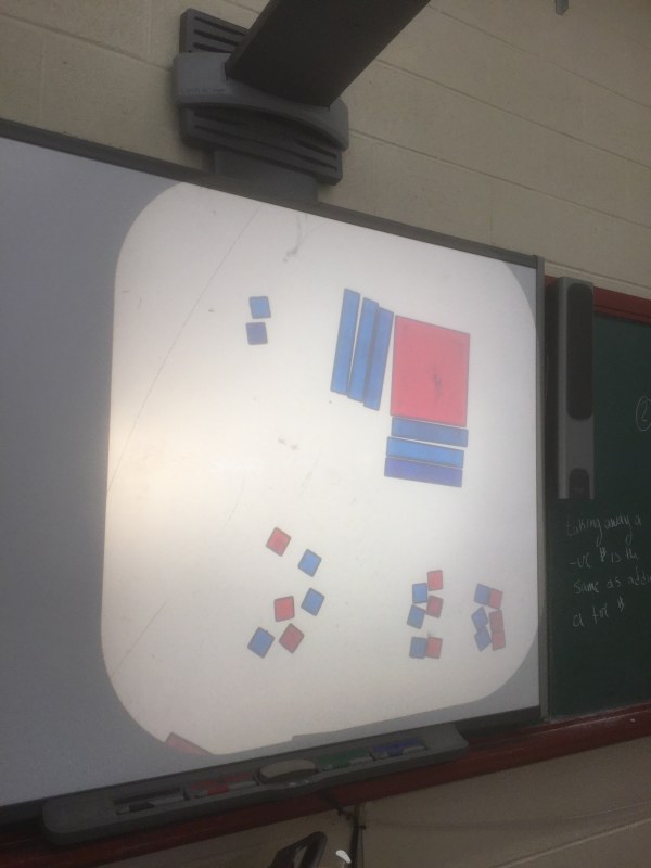 We need to complete the square with 3 more red squares so we add 3 zero pairs