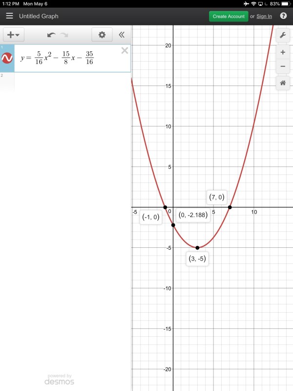 By plotting this equation on desmos, we could verify that the vertex and roots were what they were supposed to be.
