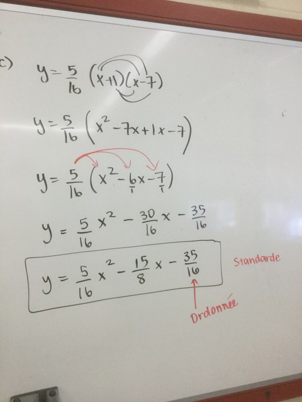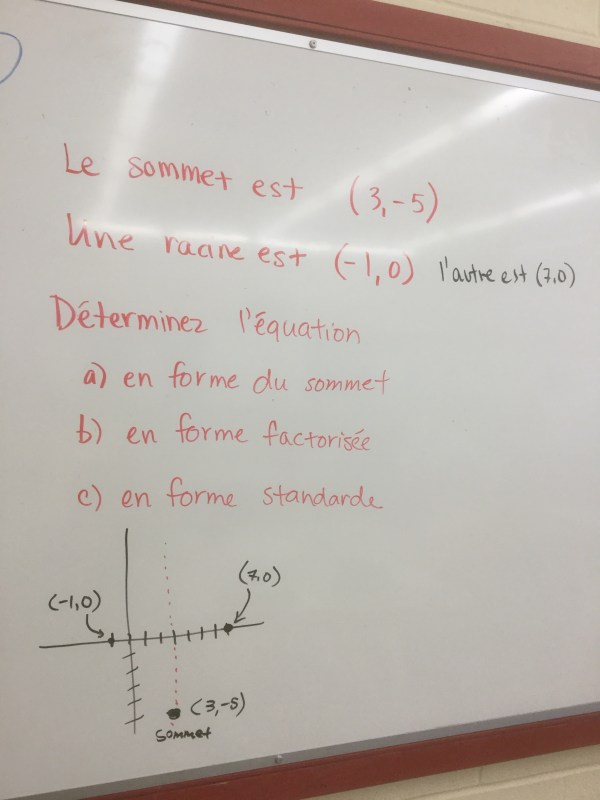 Grade 10s are working hard to determine the key features of parabolas from different equation forms, and vice versa. We looked at working backwards to create equations given different graph features.