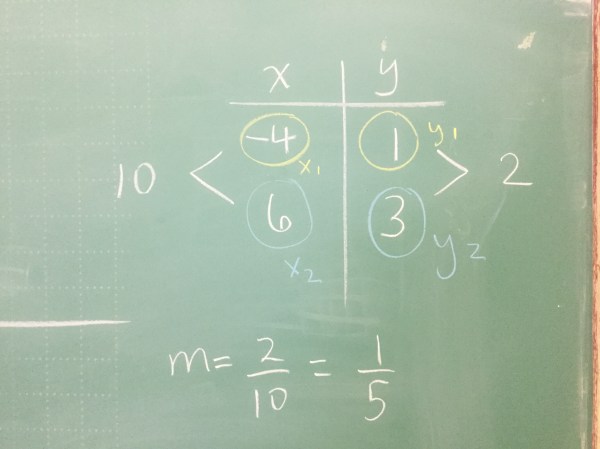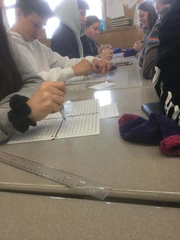 Grade 9s are working on graphing lines, and making equations for graphs.