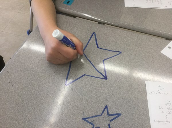 We cut each point in half, along a line of symmetry. We then cut each of the 5 rhombus in half perpendicular to the other diagonal.