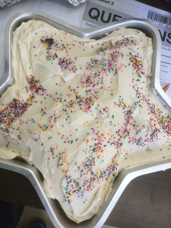 We celebrated the end of our EQAO test with a star cake! Congratulations grade 9s, you worked really hard, and so many of you demonstrated your growth, perseverance, and attention to detail over the past days of testing.