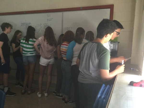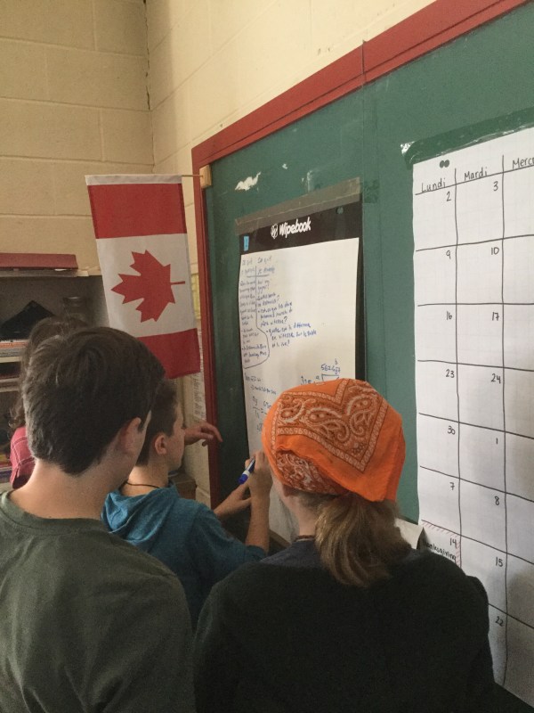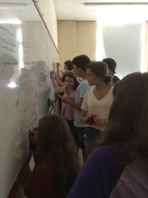 We have 1 marker per group, and everyone takes turns writing, and calculating, and thinking about what’s next.