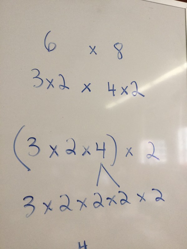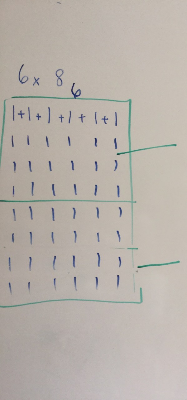 We looked at 6×8 today, which we can break into 5×8 and add that to 1×8, or also by using subtraction find 8×8 and subtract 2×8.