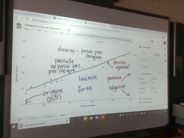 Grade 9s measured the televisions in their homes last night. We compiled the data today to see if TVs length and width are related.