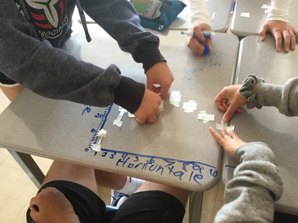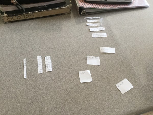 We arranged the rectangles on a graph. Horizontal dimension was the independent variable, and Area was the dependent variable. We used the rectangles as the dots.