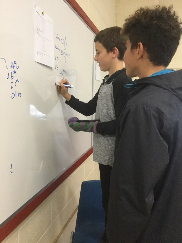 Grade 9s worked on EQAO practice questions related to surface area, volume, perimeter, pythagorean theorem, and scatter plots today.