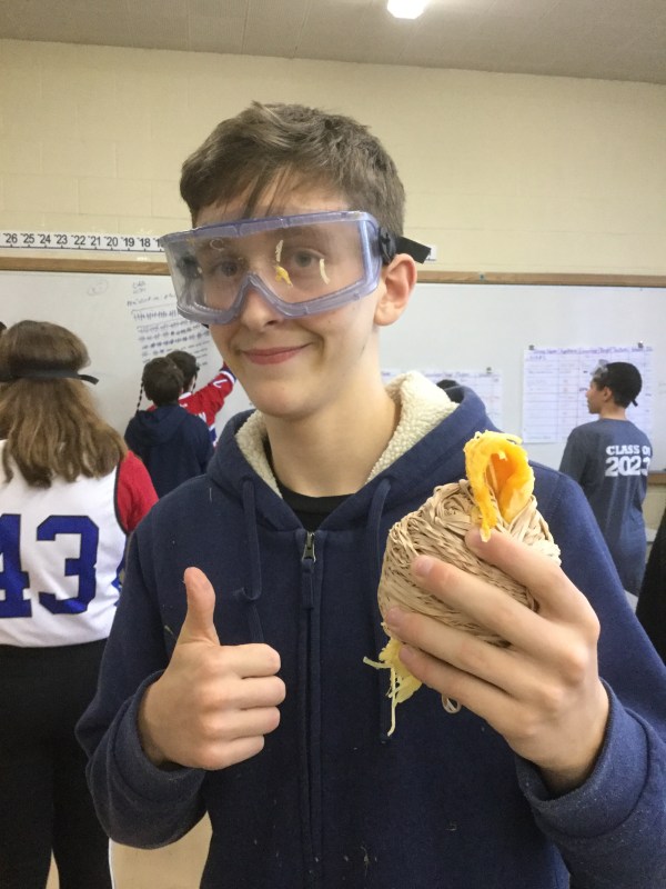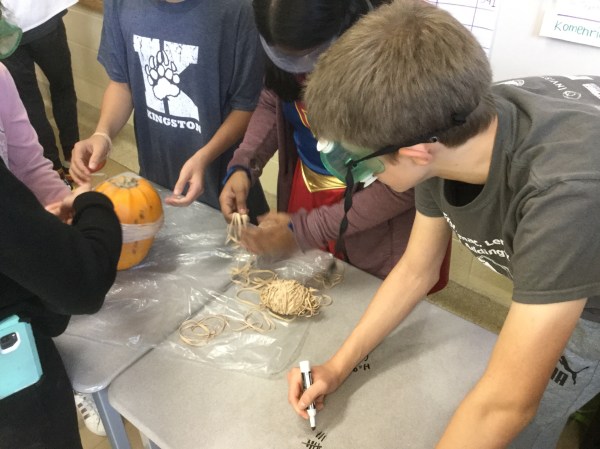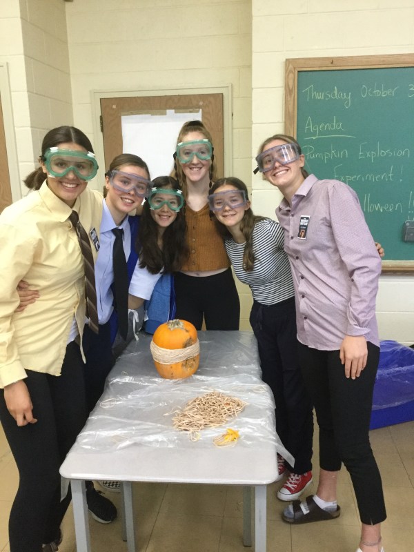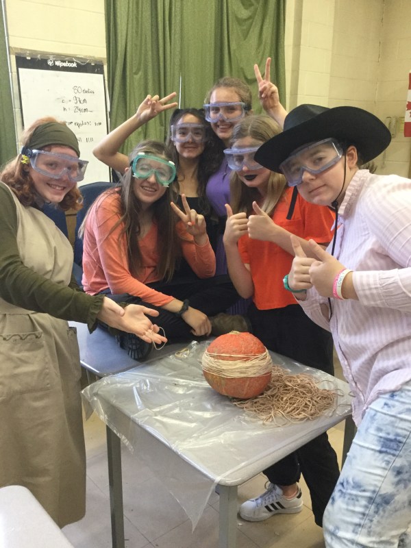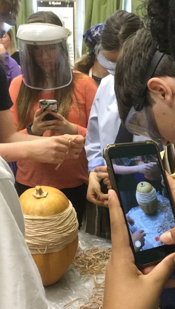 We spent Hallowe’en with grade 9s exploding pumpkins.