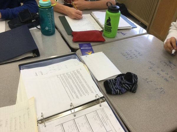 We’re taking pictures to put our work into our study notes which are due tomorrow.