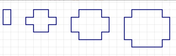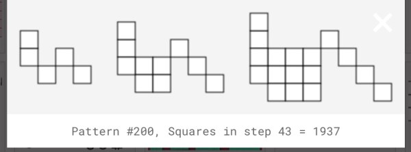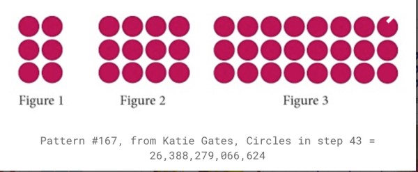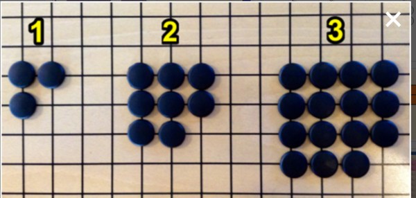Since our projector was not cooperating today I couldn’t say as much as I wanted about these patterns. We were looking at what questions might be interesting to ask, and how we could represent the patterns with algebra. Questions are referring to the patterns ABOVE them. (Patterns are from visualpatterns.org)