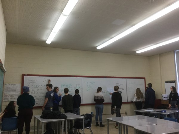 Grade 9s did their first 3 act math task today. For 3 act tasks we watch a video, or see a picture, and then we notice and wonder things about the initial situation. We think about information that we’d want to know, or we make connections to other concepts we’ve learned or questions we’ve solved.