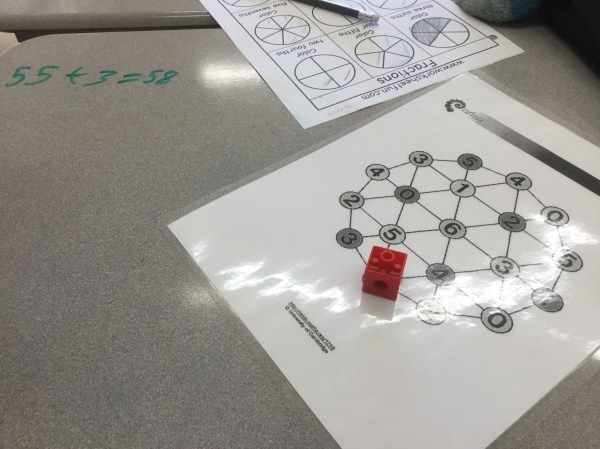 After our fractions work we played the game of totality. We took turns moving the marker, and adding the value to the the previous total. The goal was to be the person to land on the number that brings the total to exactly 50.