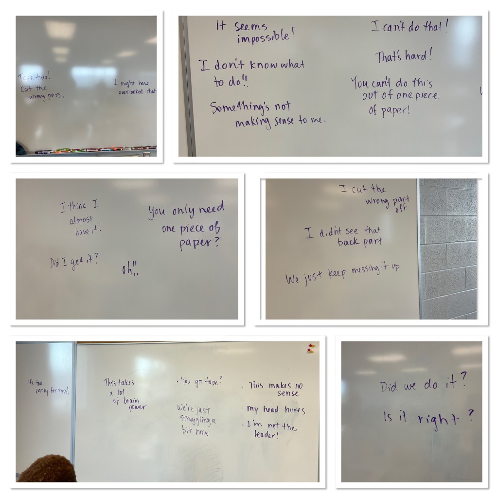 While they worked, I documented some of their commentary. There was evidence of frustration, and exasperation, and also evidence of some students perseverance.